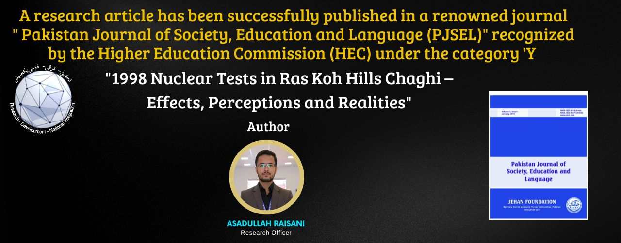"1998 Nuclear Tests in Ras Koh Hills Chaghi – Effects, Perceptions and Realities"