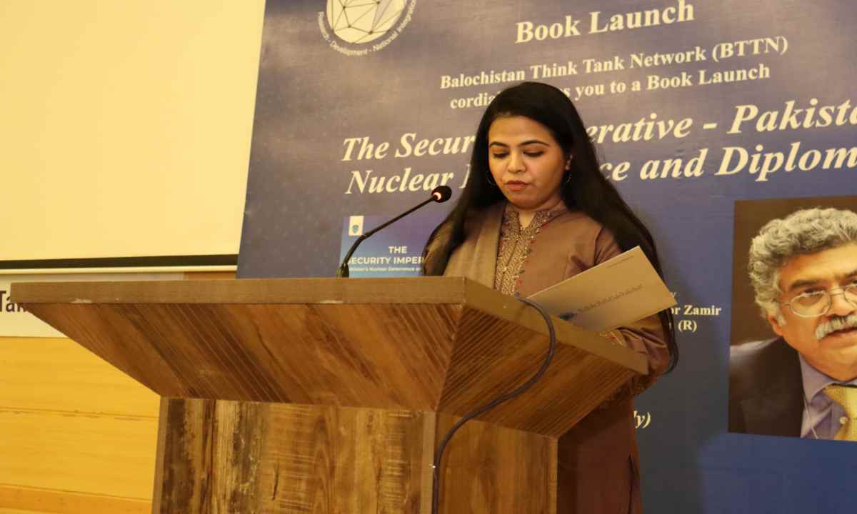 Balochistan Think Tank Network hosted the launch ceremony of the book titled, “The Security Imperative – Pakistan’s Nuclear Deterrence and Diplomacy” authored by Ambassador Zamir Akram, on Friday, December 01, 2023, at BTTN seminar hall. The speakers included Ambassador Zamir Akram, Dr Zafar Khan, Executive Director at BTTN, Dr Beenish Sultan Assistant Professor, Department of International Relations, BUITEMS, and Miss Hananah Zarrar, Associate Director at BTTN. The Chief Guest of the event was Lieutenant General (R) Khalid Ahmed Kidwai, Advisor National Command Authority. The event was graced by Vice Chancellors of different Universities across Balochistan and students from various higher education institutions attended it. Mr. Ali Abbas, Research Officer at BTTN was the Master of the Ceremony.