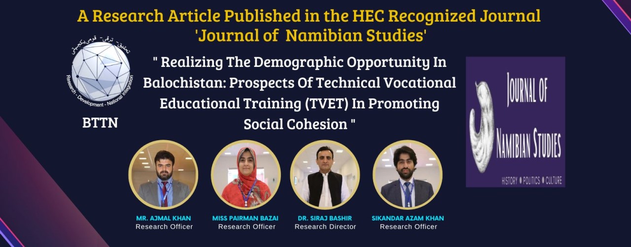 "Realizing The Demographic Opportunity In Balochistan: Prospects Of Technical Vocational Educational Training (TVET) In Promoting Social Cohesion"