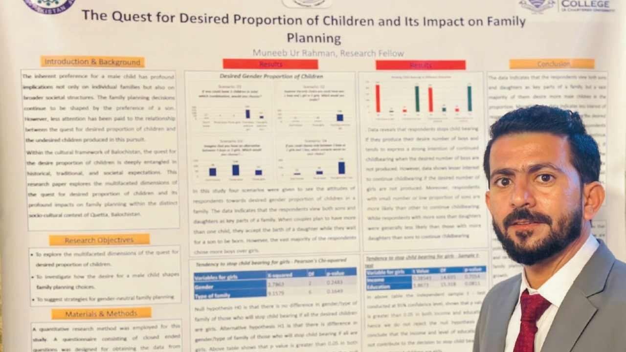 Mr. Muneeb’s research on the title of “the Quest for Desired Proportion of Children and Its Impact on Family Planning; suggests that although policies that are aimed at reducing family size are essential, more focus should be on the policies that could empower women and reduce the desire and race for a male child.