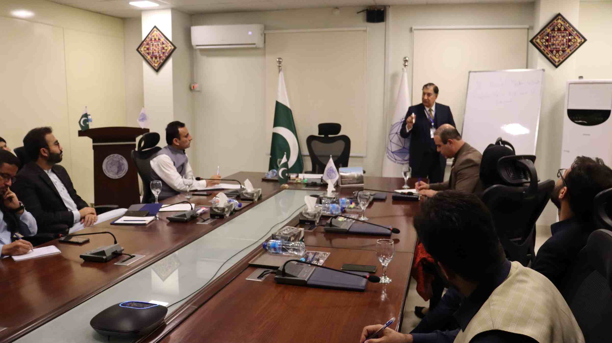 Brig Agha Ahmad Gul (R) gave concluding remarks by stressing upon the importance of three corners of the development triangle – economy, society, and politics. He explained that these three corners are interlinked with each other and the collective development of a nation is dependent on the development of these three corners simultaneously. He further elaborated the significance of history and geography of Pakistan. He recommended that we should work on making ourselves more disciplined and play our role in the development of a nation. He motivated the Faculty of Research to carry out their own job with diligence no matter how grave the situation might appear to be. Brig Gul concluded his talk by a message that we would not give up on Pakistan, we would take it to the heights of glory which our forefathers had envisioned in 1940.